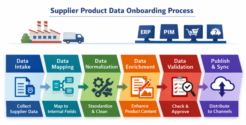Supplier product data onboarding is the structured process of collecting, validating, enriching, governing, and publishing product information received from manufacturers or vendors so it can be used across ERP, PIM, eCommerce, marketplaces, and sales channels.